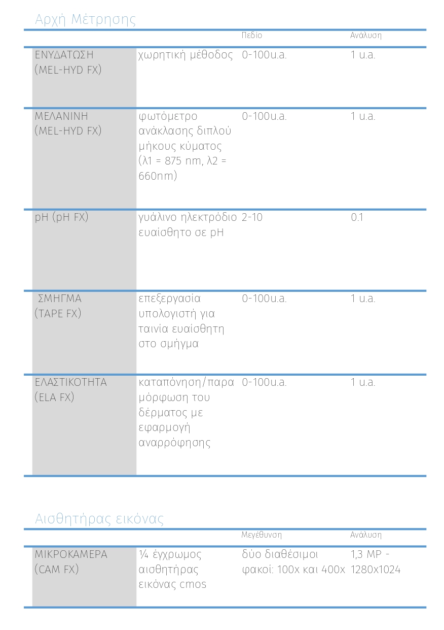 Για μέτρηση ενυδάτωσης, μελανίνης, ελαστικότητας και pH σε πραγματικό χρόνο